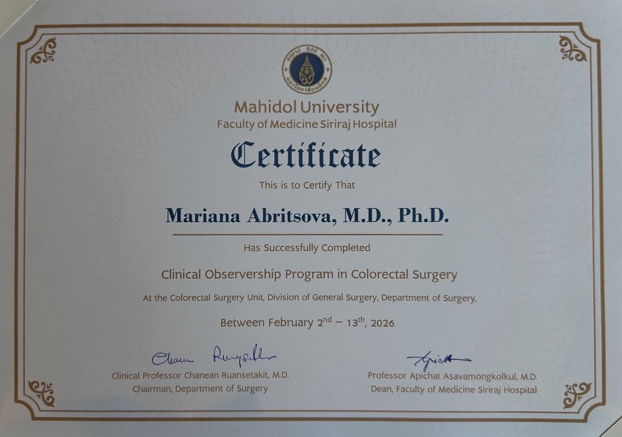 В феврале 2026г я посетила Siriraj Hospital в Бангкоке. Проходила международную стажировку у профессора Varut Lohsiriwat.